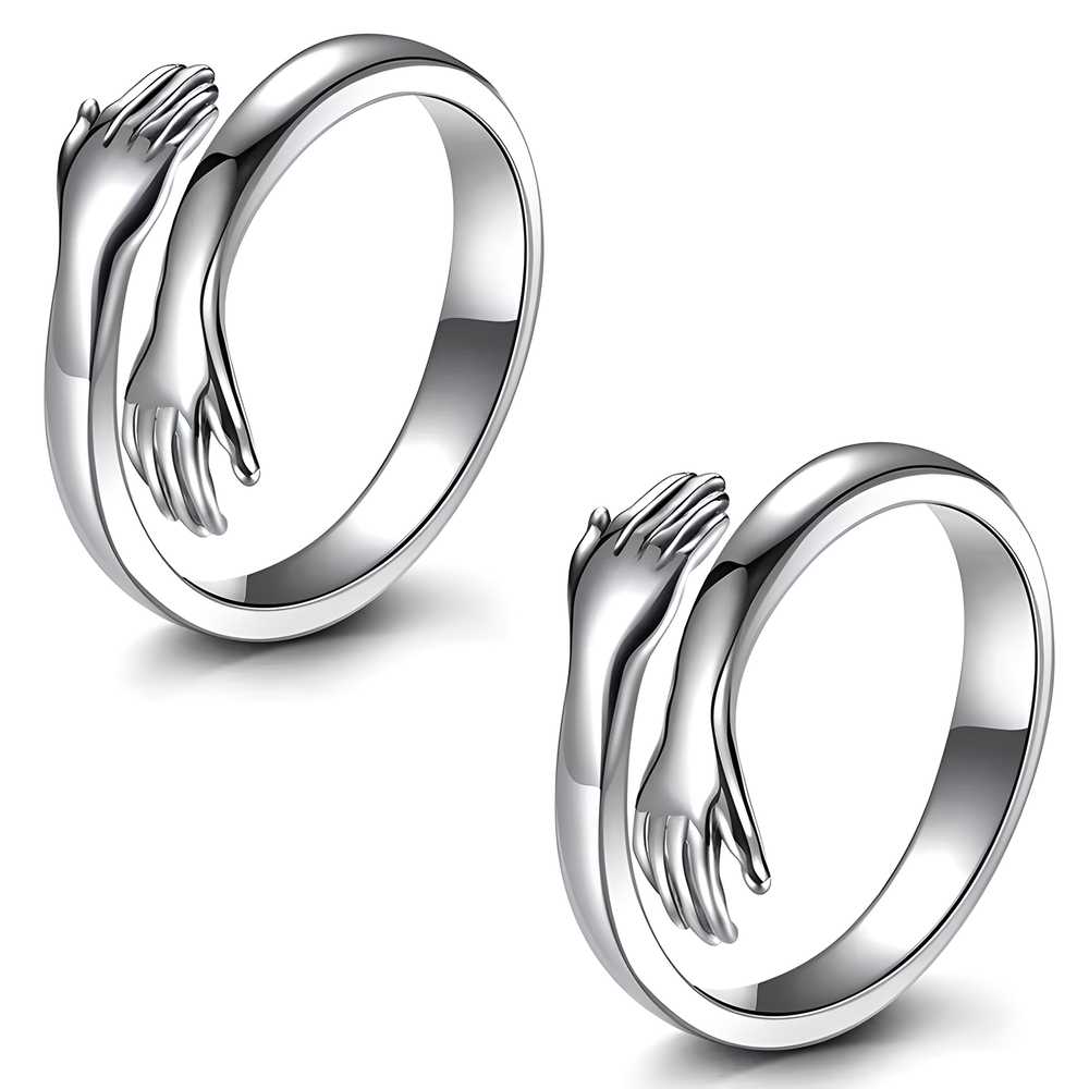 AVR JEWELS Pack of 2 Special For Couple Silver Plated Friendship Loved Ones Hug Ring