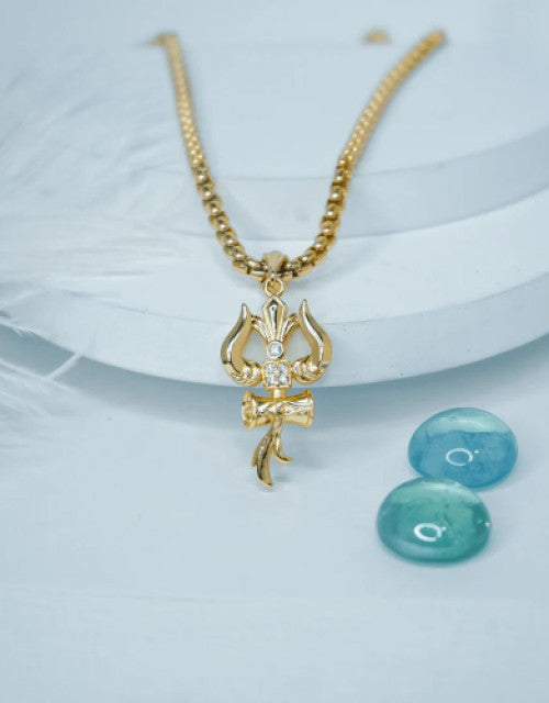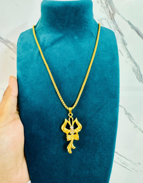 Premium Trishul Om and Damru pendant with chain