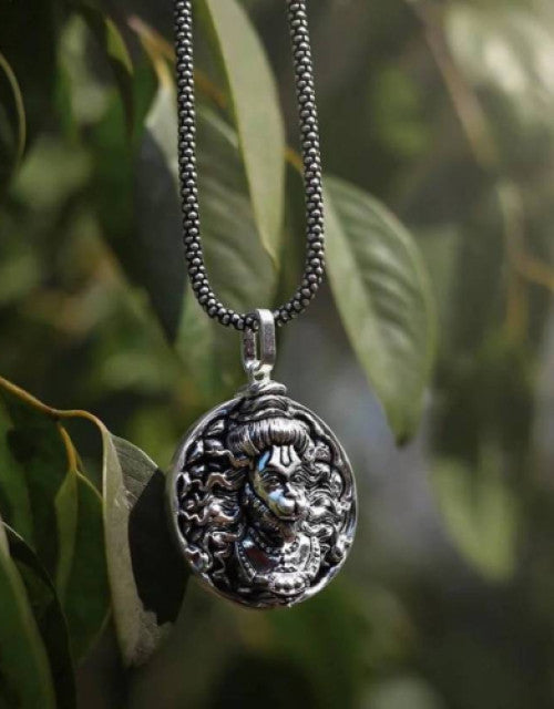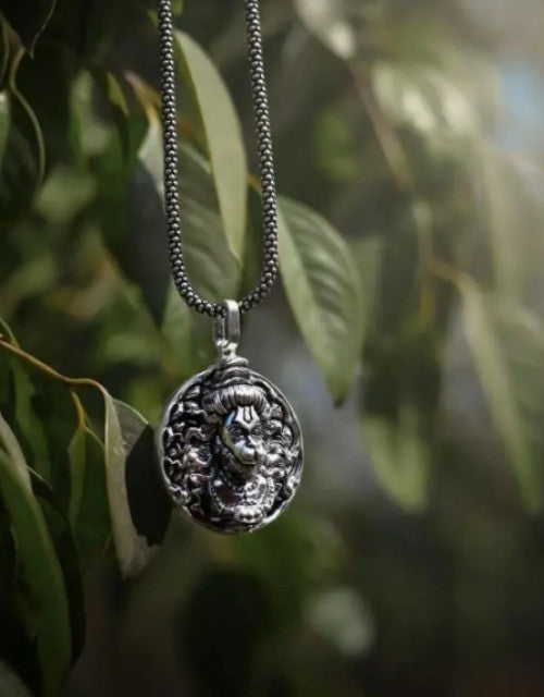 Silver Chain with Hanuman Pendant Rhodium, Black Silver Stainless Steel, Alloy Locket